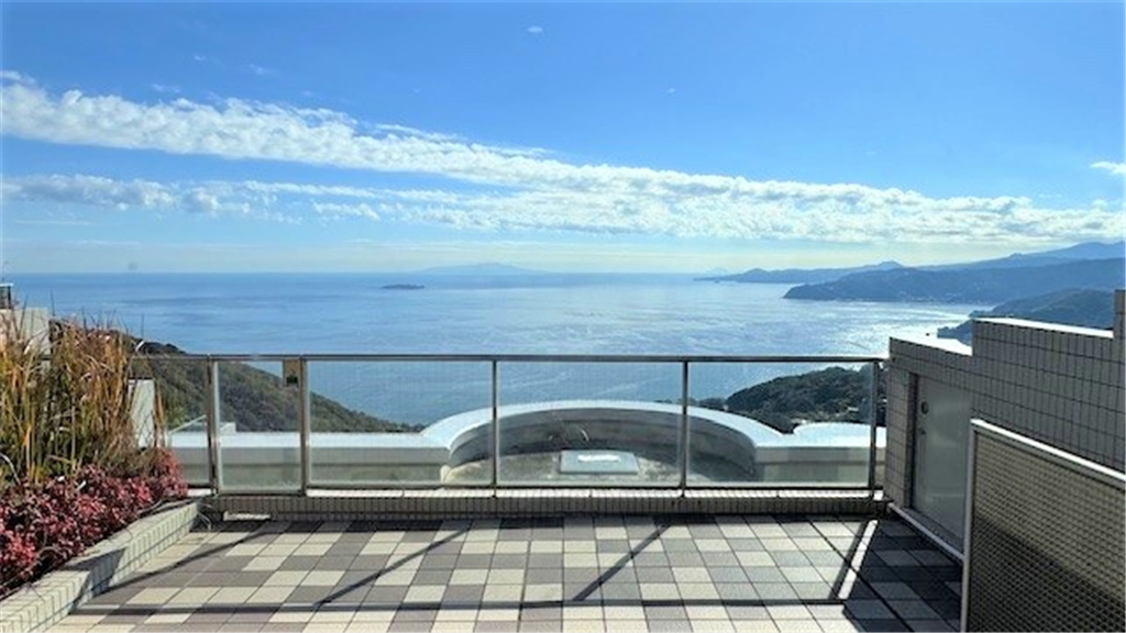 高台から見渡す相模灘や初島・伊豆大島の雄大な景色!ルーフテラスより「熱海海上花火大会」が見えます!