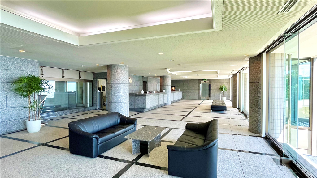 施工:大成建設 エントランスが花崗岩で構成された重厚感あるリゾートマンション。28.76m2の開放感あるルーフテラス付きのお部屋です。