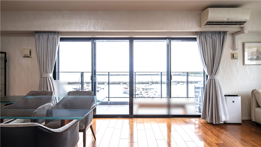 リビングは熱海海上花火大会の特等席!大音響で迫力の花火を愉しめます。目前に相模灘を望む6階角住戸。
