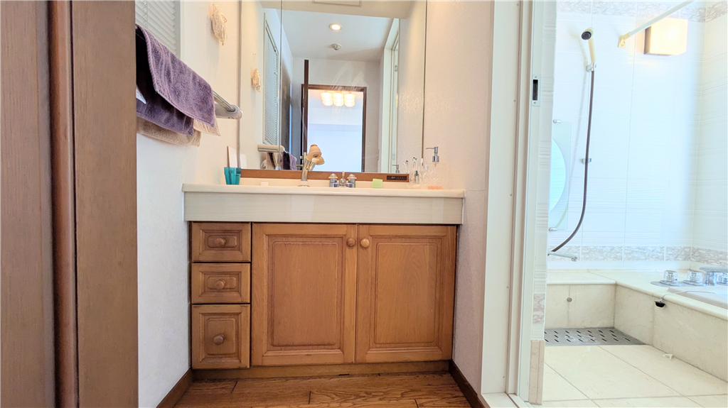 大成建設分譲、重厚な石造りの外観が特徴のリゾートマンションです。南東向きで明るく、丁寧にご利用された室内は綺麗な印象です。海の青さを全ての居室からお愉しみいただける間取りです。