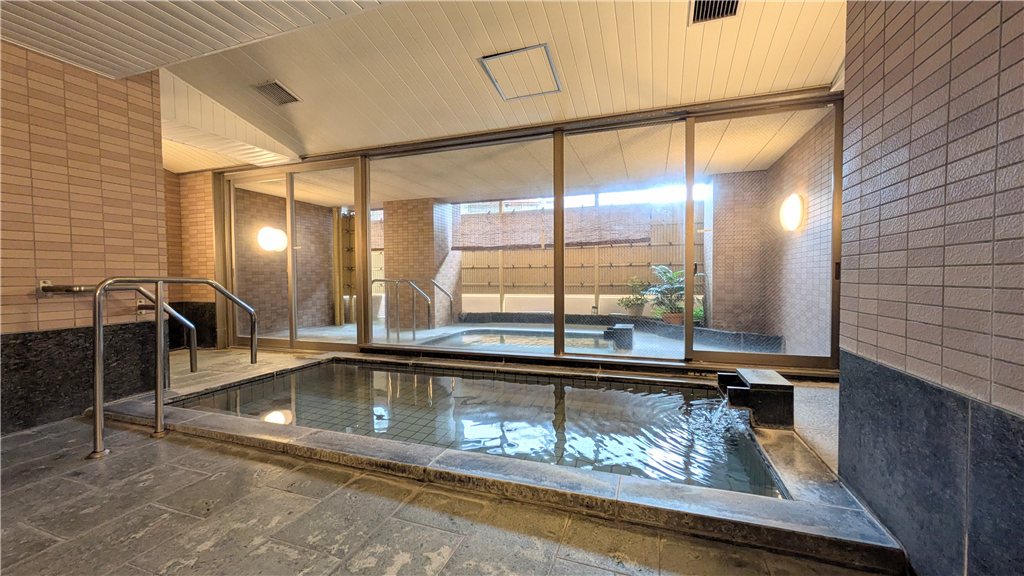 建物前の横断歩道を渡ると商店街(平和名店通り・約30m)!屋上に出ますとパノラマ眺望が楽しめます!檜風呂、露天風呂等充実した温泉施設を楽しめます。