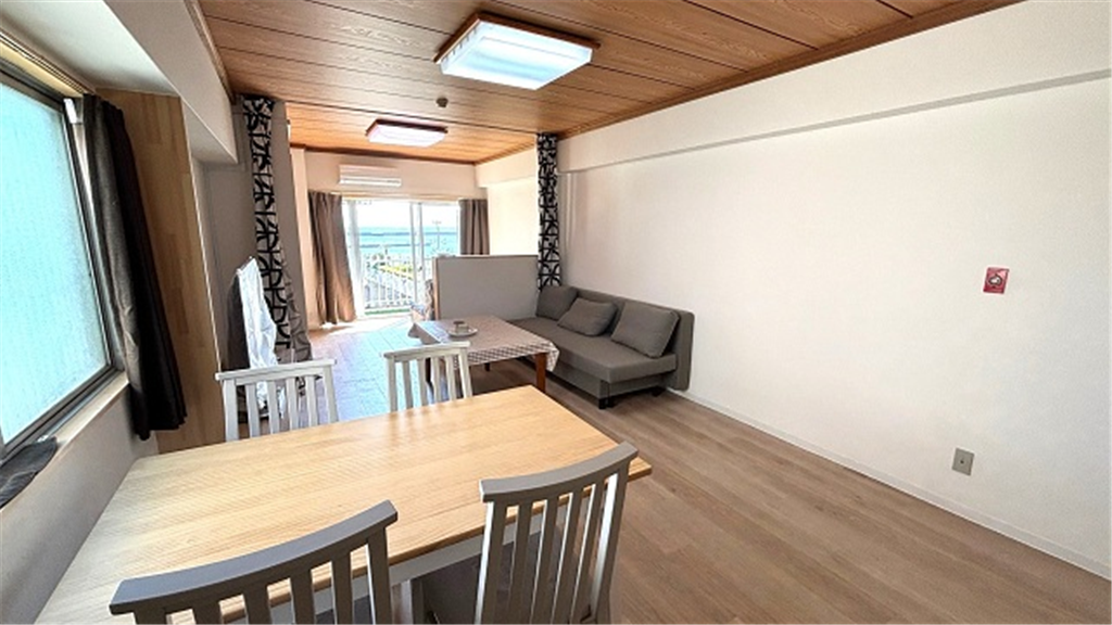 海岸線1列目のマンション。熱海海上花火大会、サンビーチのライトアップも楽しめます。二面採光につき明るい室内で、段差が少ないバリアフリーな間取りです。