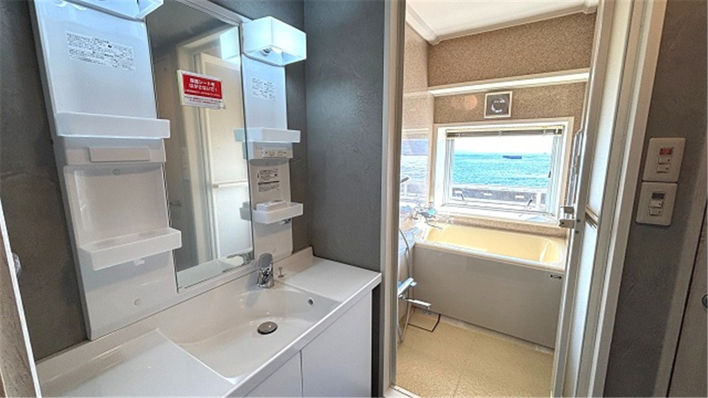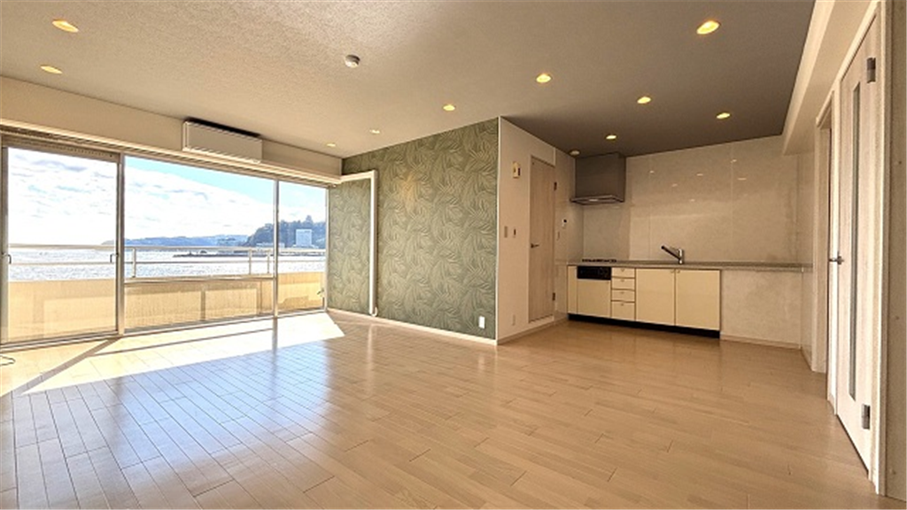 相模灘を一望できる南東向きの明るいリビング。温泉大浴場のほか各戸別温泉付き。癒しのひと時をお過ごし下さい。