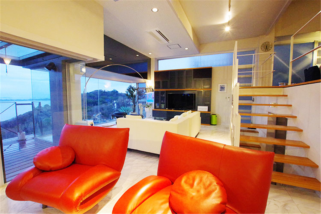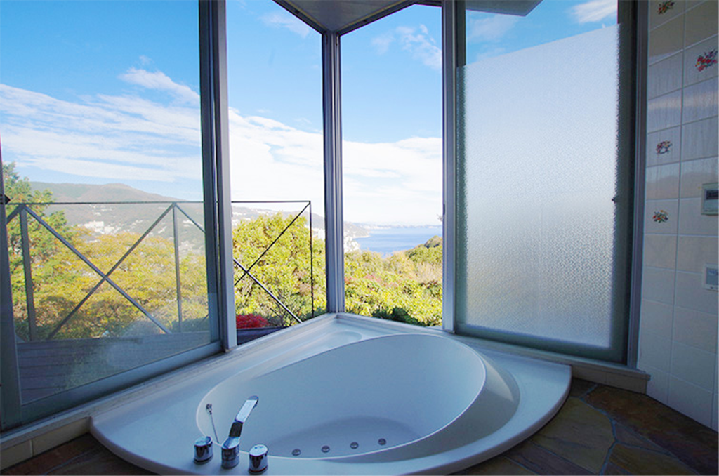大きなガラス張りのリビングや浴室から相模灘、熱海の街を一望できます。