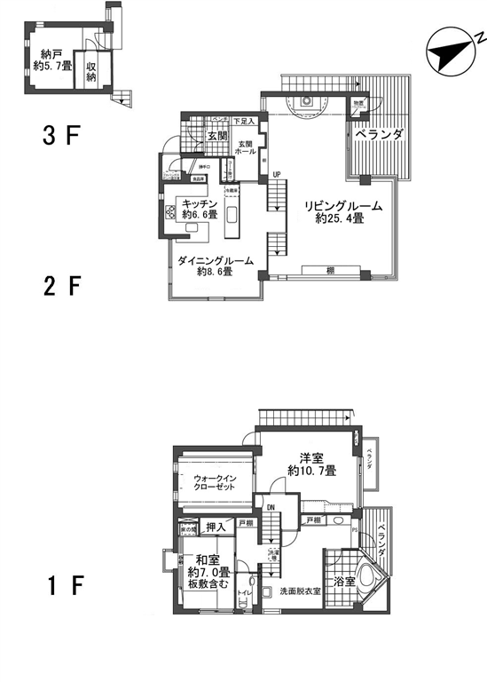 | 建物 | 延床面積 | (公簿)175.96m2(53.22坪) 1階面積/79.91m2(24.17坪) 2階面積/55.85m2(16.89坪) 3階面積/40.20m2(12.16坪) |