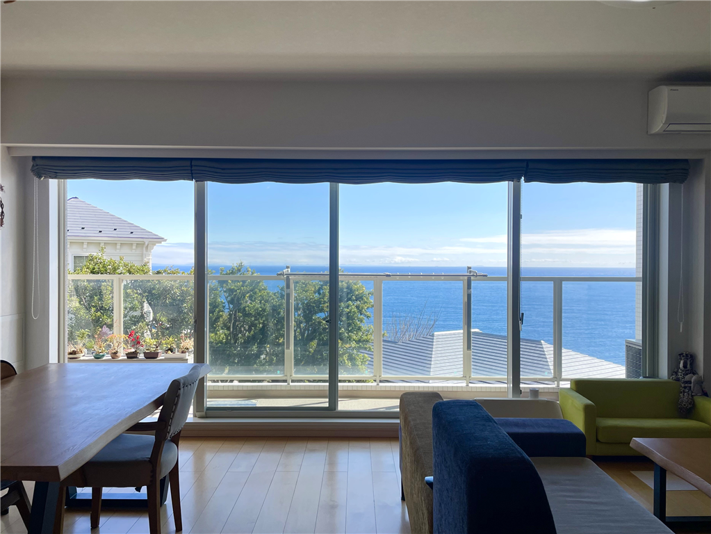 相模灘・伊豆大島・初島を見渡す角住戸!朝日に照らされ1日が始まる明るいお部屋です!