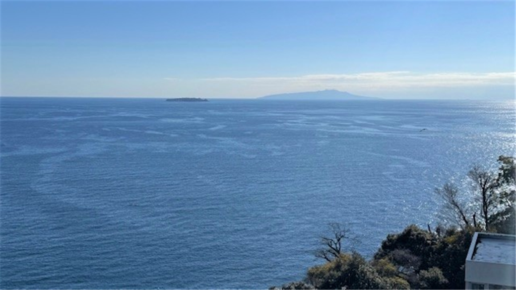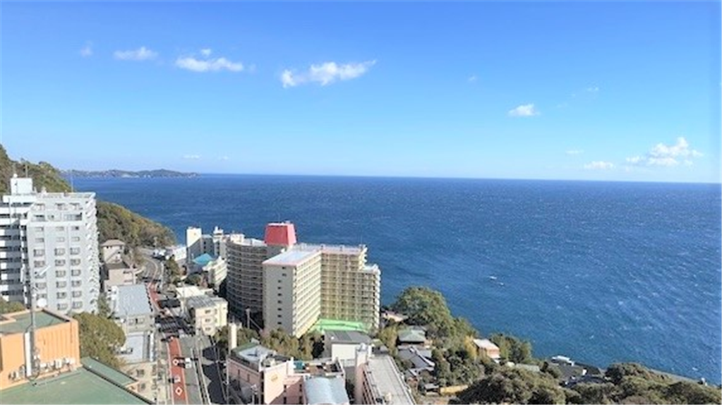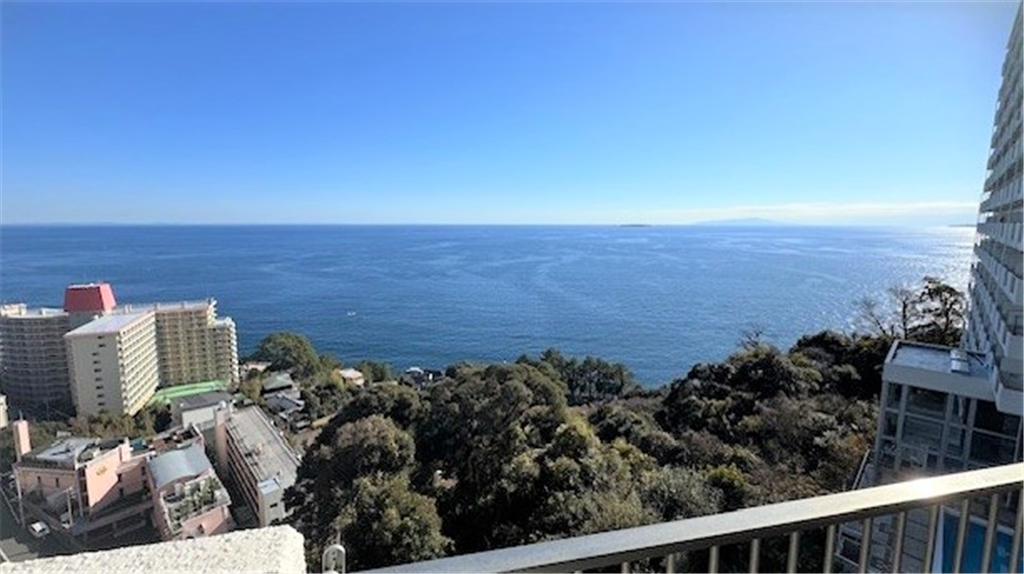湘南、房総半島まで見渡せる3号棟!初島、伊豆大島、雄大な相模灘を見渡す住戸!温泉大浴場の他、レストラン、ゲストルーム、プール等あり!
