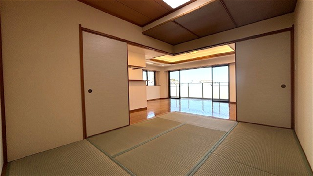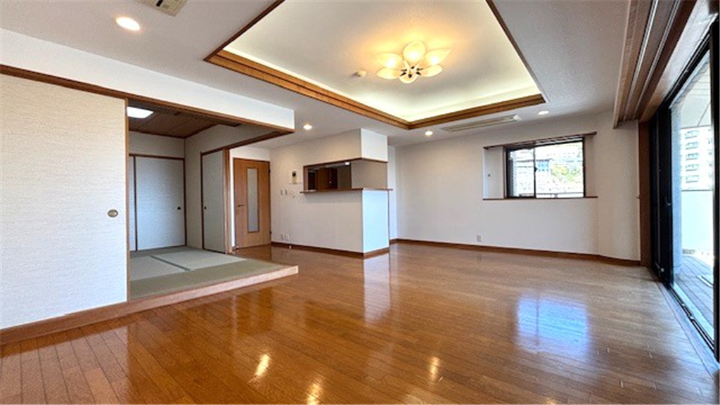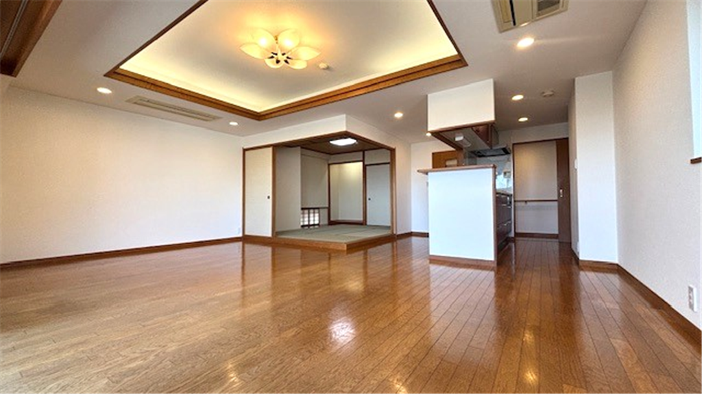 マンションフロントよりエレベーター1本で往来できる導線の良いA棟。リビングから廊下を挟み、プライベート性を感じる洋室と、襖を開放し、リビングと繋げて広々とした空間にてお寛ぎ頂ける和室がございます。