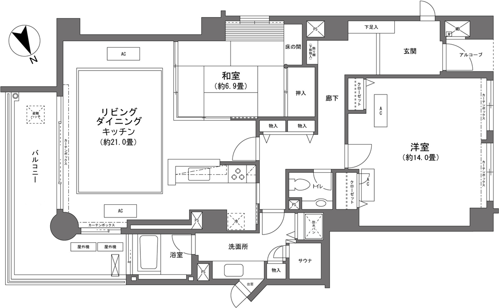 | バルコニー面積 | 14.97m2(4.52坪) | |
