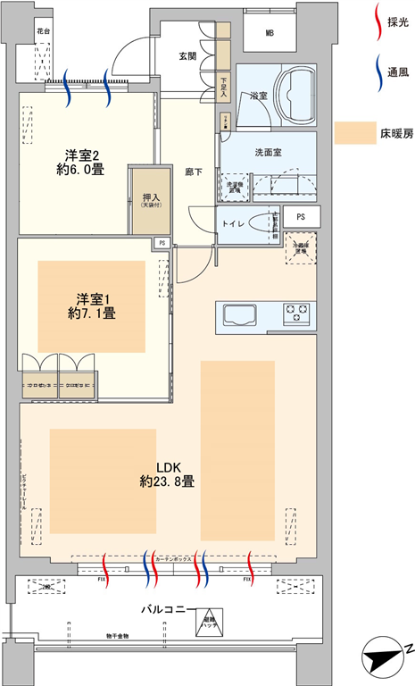 共用施設のあるC棟!間口7mのワイドスパンな間取に床暖房設置済!75m2以上の間取は棟内で13戸だけです。