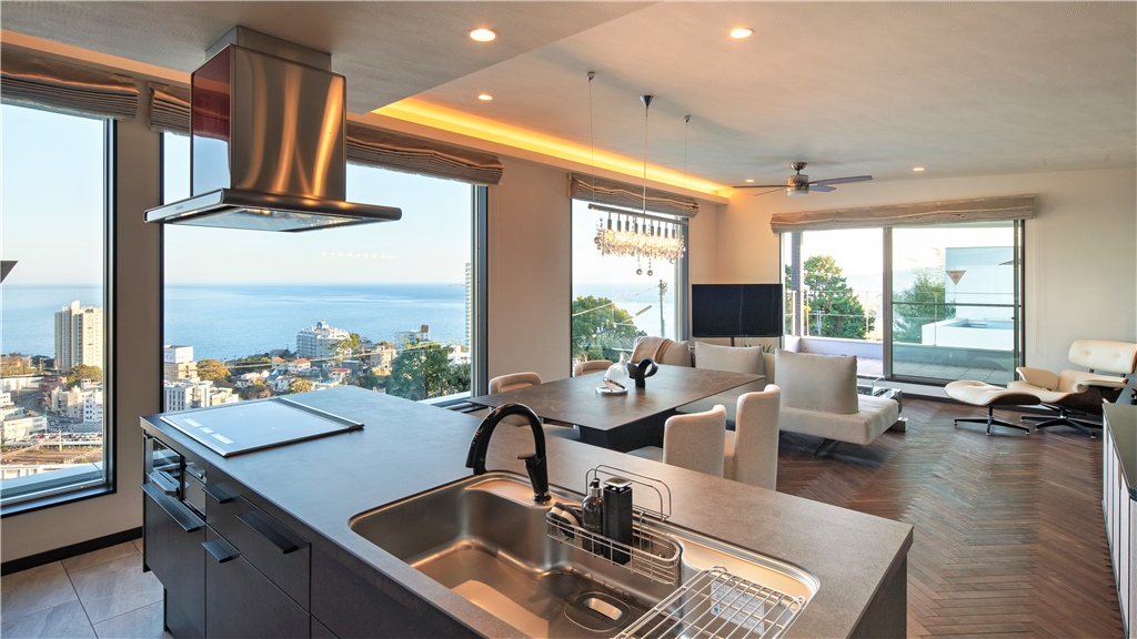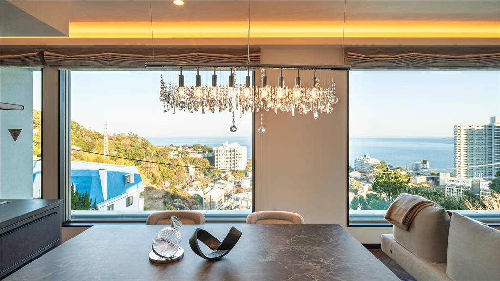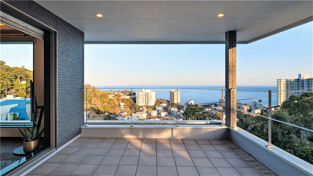 閑静な高台に立地。温泉や屋外プール付。LDKより相模灘、熱海海上花火大会が見えます。