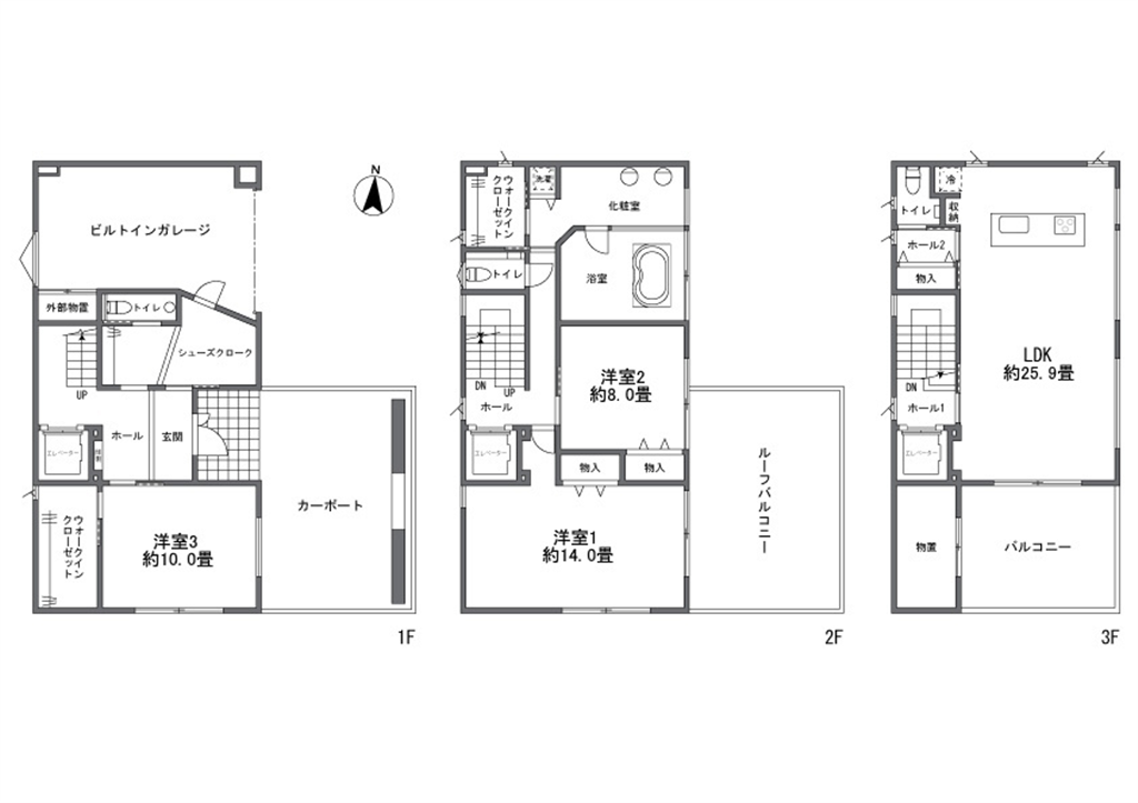 | 駐車場 | ビルトインガレージ(1台)、カースペース(約3台)有 | |