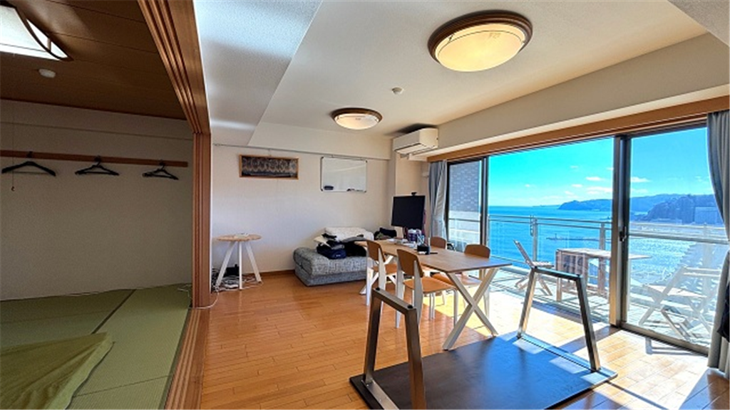 南西向きのバルコニーは日当り良く、大島、相模灘、海上花火大会を望みます。