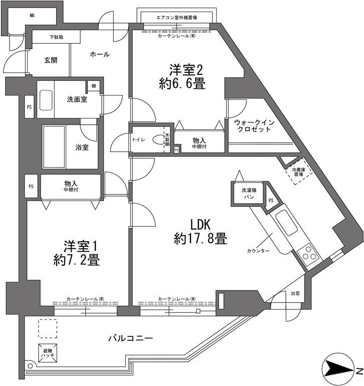 - 間取り:2LDK 専有面積:79.32m2 階/階建:7階/9階建