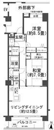 | 建物 | 専有面積 | (壁芯)72.05m2(21.79坪) |