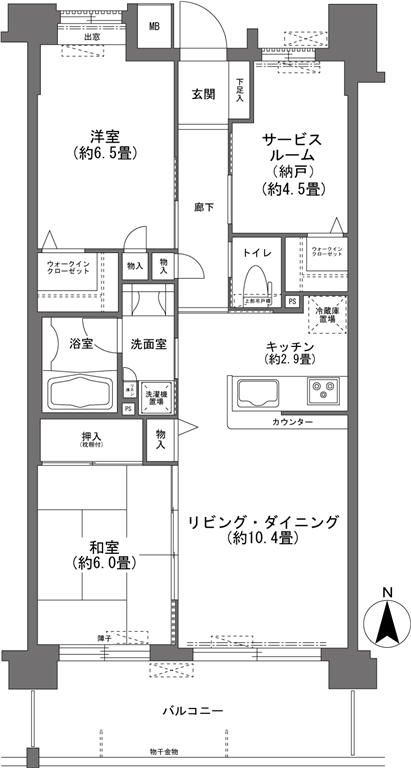 | 間取り | 2LDK+サービスルーム(納戸) | |