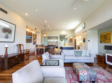 ホープアイランドのゲート付きゴルフ&ライフスタイルリゾート「THE Links」内にあり、ゴルフコースと湖を望む絶好のロケーションのヴィラタイプ物件です。約200m²の専有部と天井高い開放的な室内は、3ベッドルームに加え、メディアルームや書斎としても使える多目的ルーム(ベッドルームとしても利用可能)もあります。ゴルフコースと湖を望むマスターベッドルームには、スパ仕様の専用バスルームとウォークインクローゼットを完備し、ゆったりとお寛ぎいただけます。オープンプランのキッチンにはSmeg社製家電を備え、パントリーとランドリーが隣接し、収納も豊富で使いやすく設計されています。屋根付きテラスはガス・水道設備もあり、BBQもお楽しみいただけます。2台分の大型ガレージに加え、ゴルフバギー専用ガレージも完備されています。さらに、25m温水プール、テニスセンターなどの充実した共用施設もご利用いただけます。