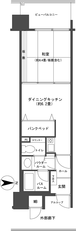 備考 | アルコーブ面積/1.29m2(0.39坪)、総戸数(293戸)・駐車場(58台/無料) | |