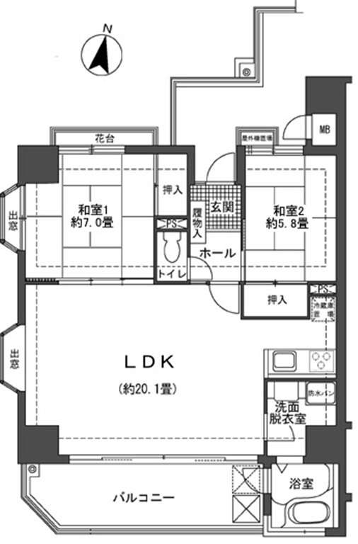 | 建物 | 専有面積 | (壁芯)71.85m2(21.73坪) |