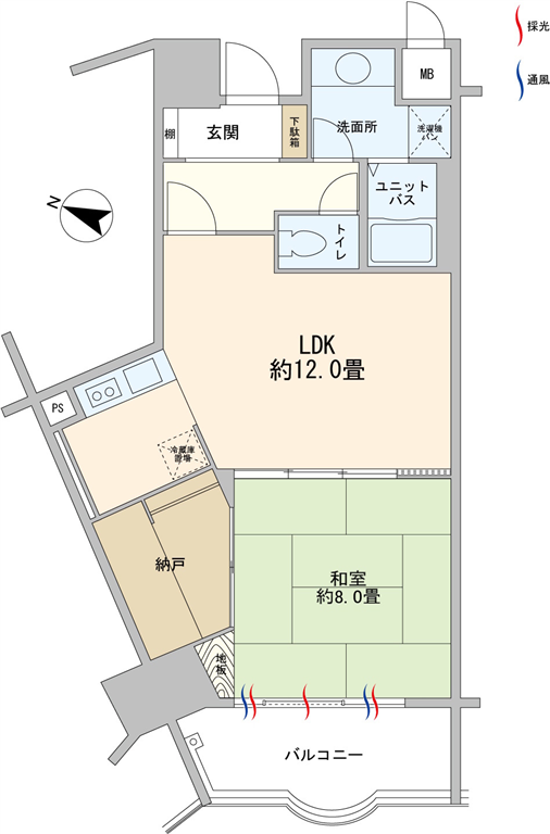 - 間取り:1LDK+納戸 専有面積:53.78m2 階/階建:8階/12階建