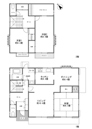 | 建物 | 延床面積 | (公簿)122.55m2(37.07坪) 1階面積/74.18m2(22.43坪) 2階面積/48.37m2(14.63坪) |