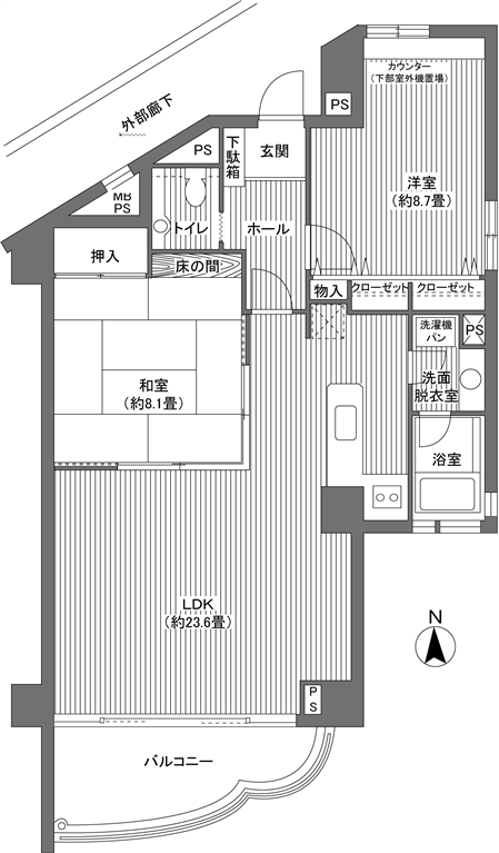 | 建物 | 専有面積 | (壁芯)84.45m2(25.54坪) |