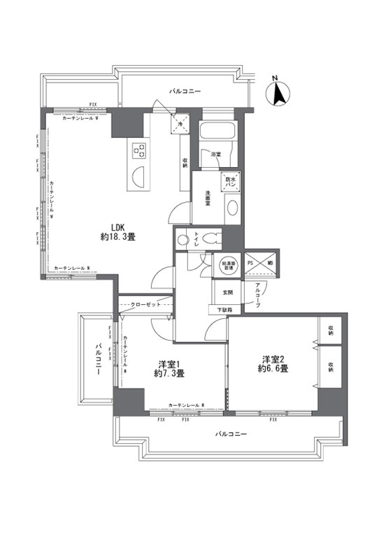| バルコニー面積 | 23.04m2(6.96坪) | |