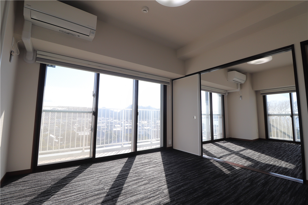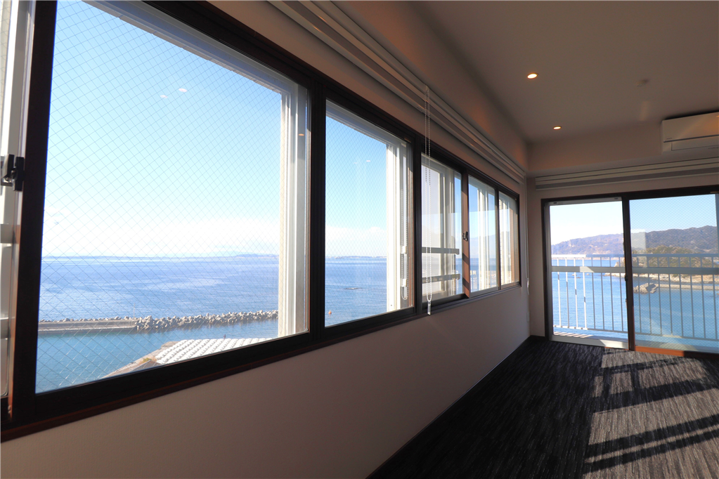 南・西・北側の3面開口のリビングから、東京湾、三浦半島、伊豆半島、富士山まで見晴らす開放感のある眺望が魅力のお部屋です。