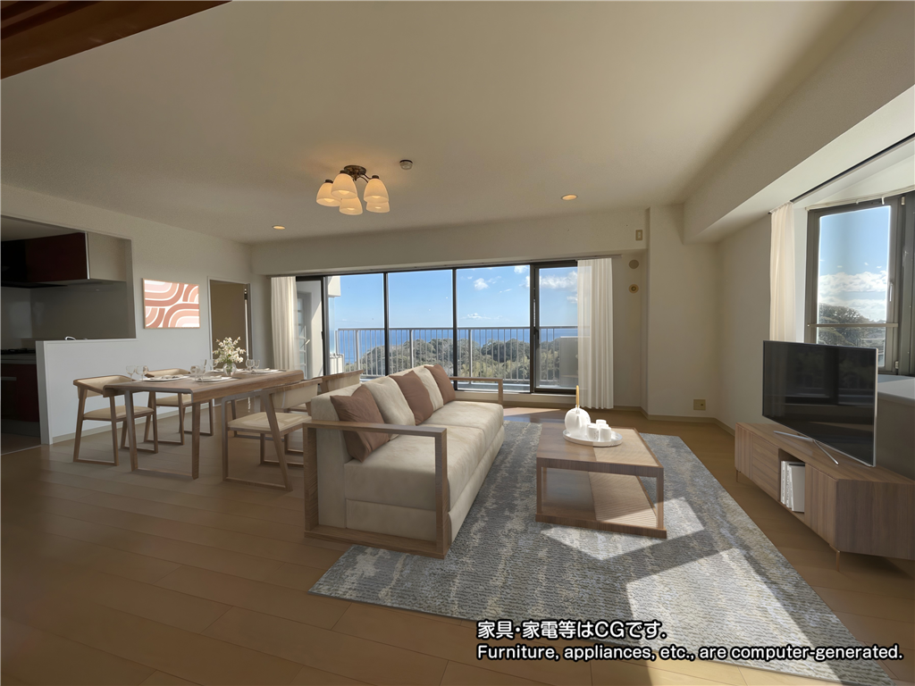 【当社売主物件/仲介手数料不要】太平洋を望むビューバス付き2LDK住戸。南向きで日当たり良好。