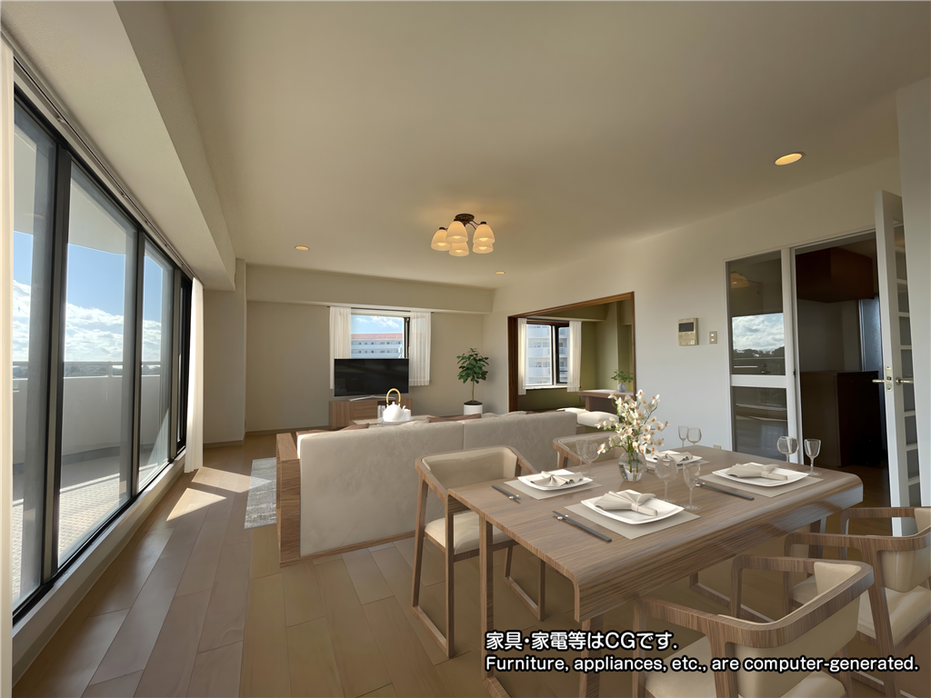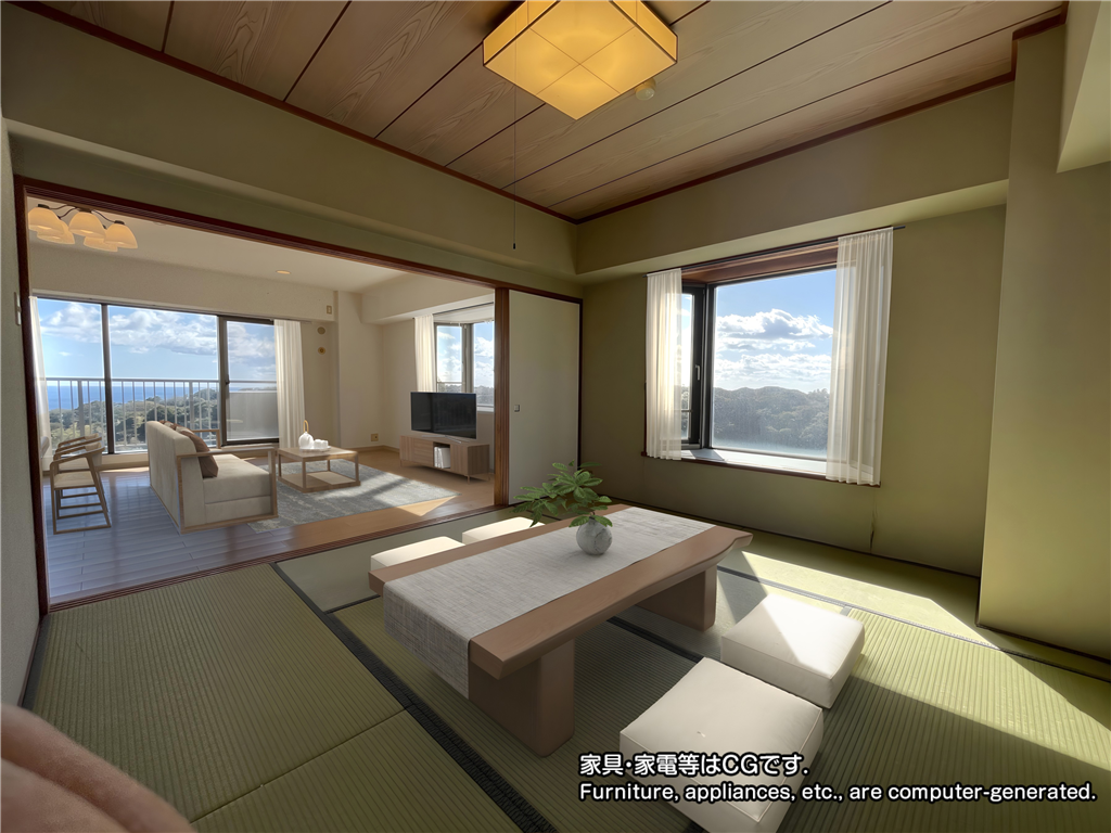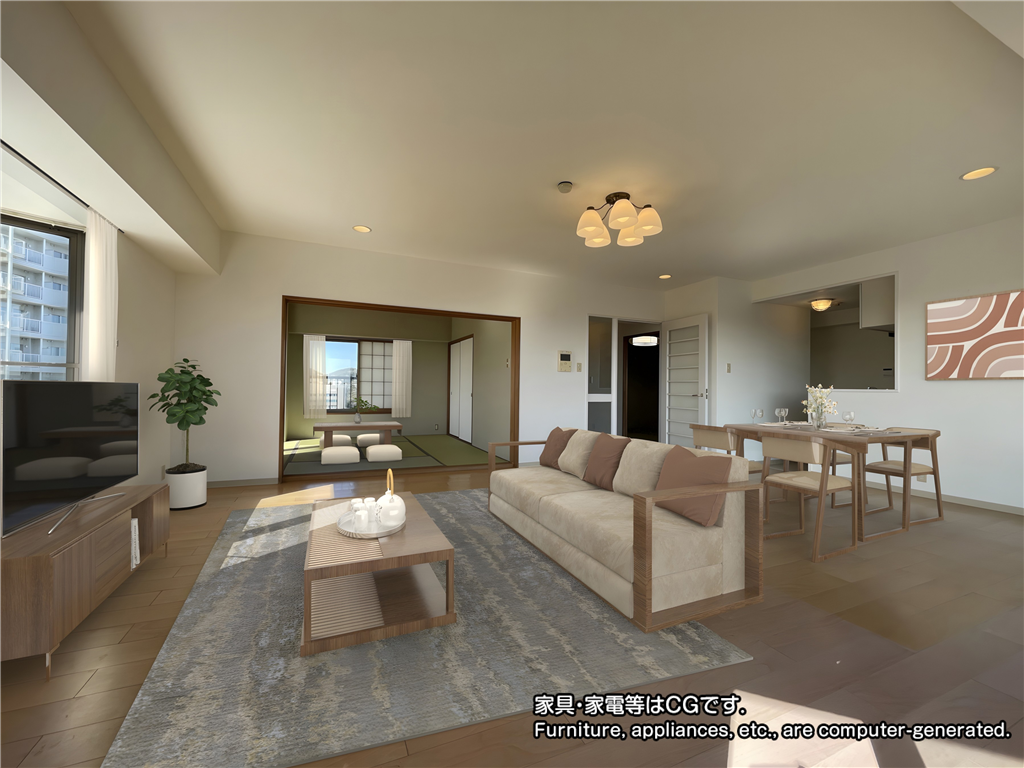 | 注記 | ※画像に配置された家具・家電等はCGです。販売対象ではありません。 ※土砂災害警戒区域(イエローゾーン)に該当しています。 ※リフォーム・補修等内容は別紙「リフォーム・補修等工事説明書」を参照ください(2026年4月上旬完了予定)。 |
