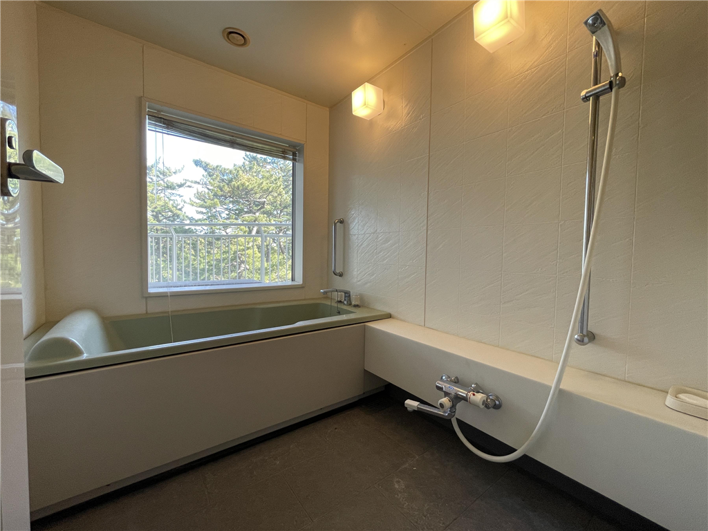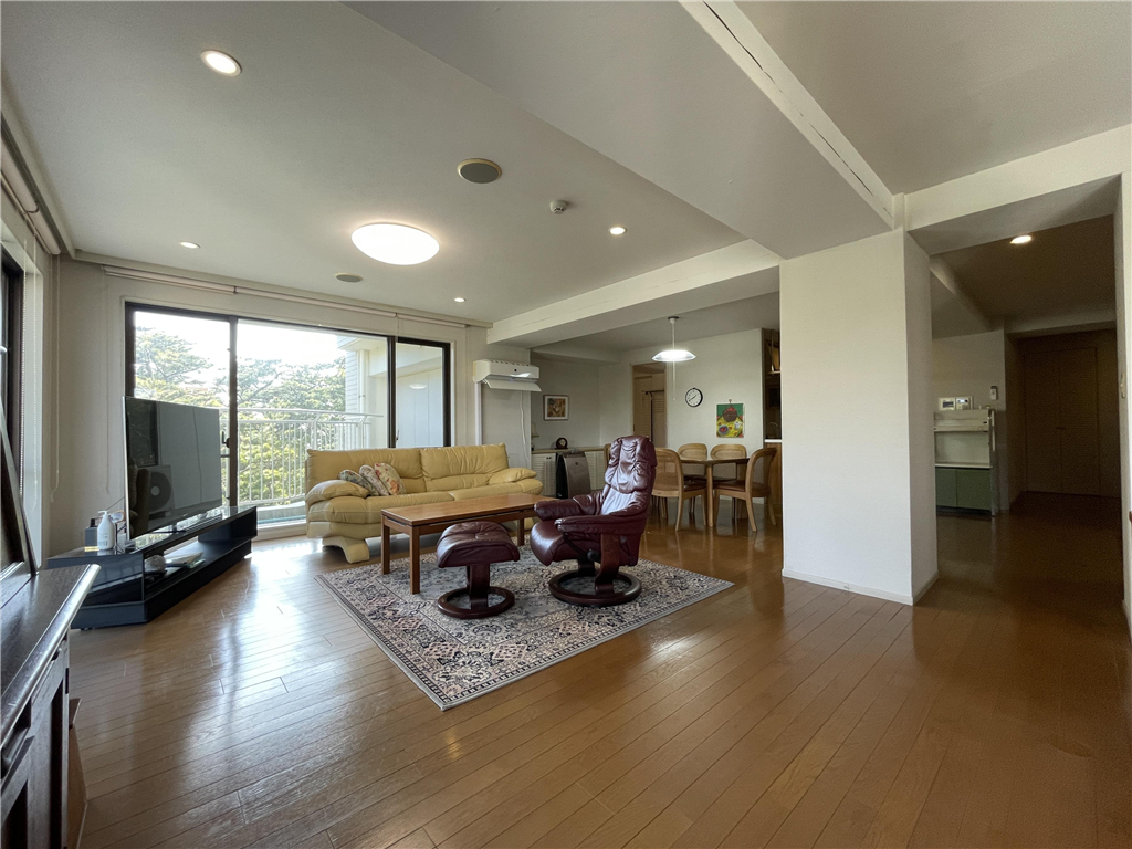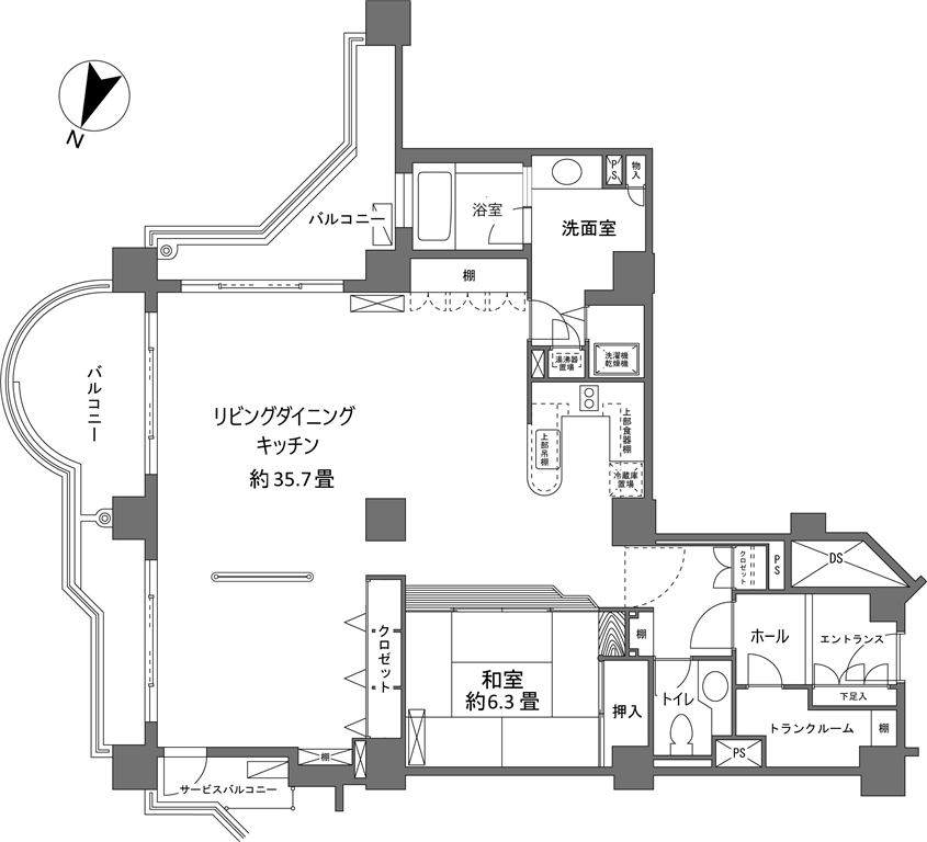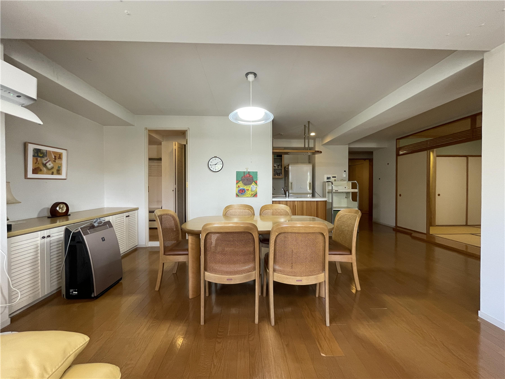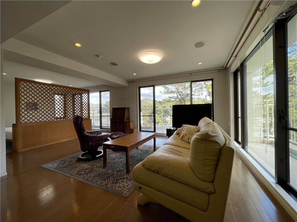 LDKが約35.7畳の開放的な間取り。男女別サウナ付共同大浴場、和風レストラン、屋外プールなど共用施設も充実。