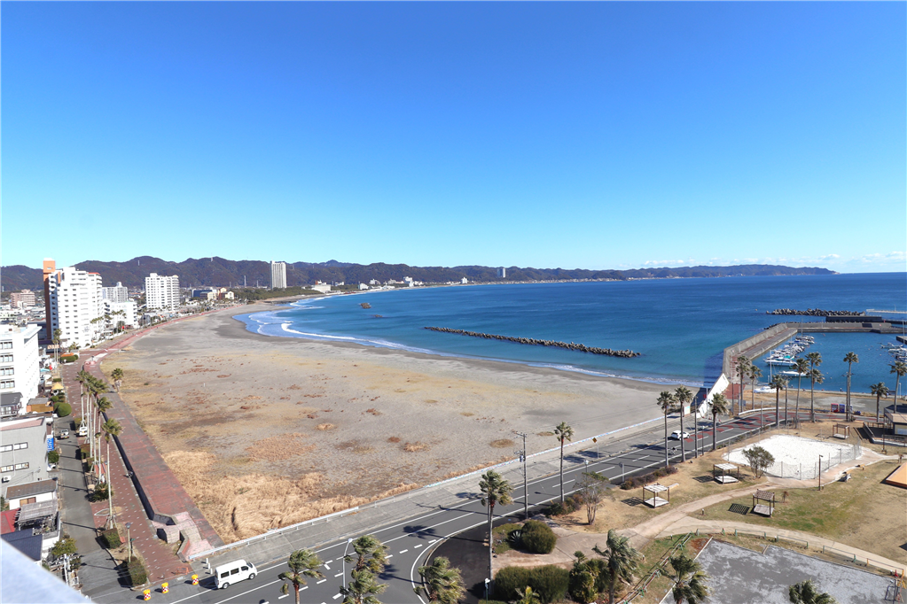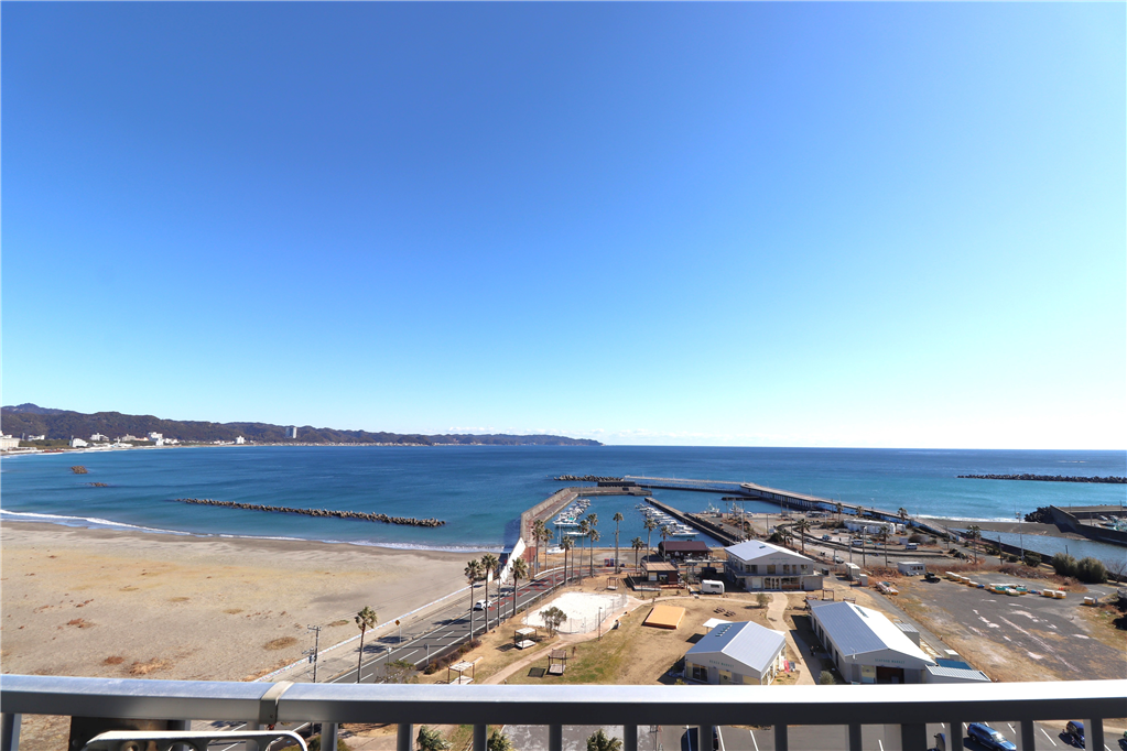 眼下に広がる太平洋、前原海水浴場の砂浜を望む開放的な眺望が魅力の住戸です。