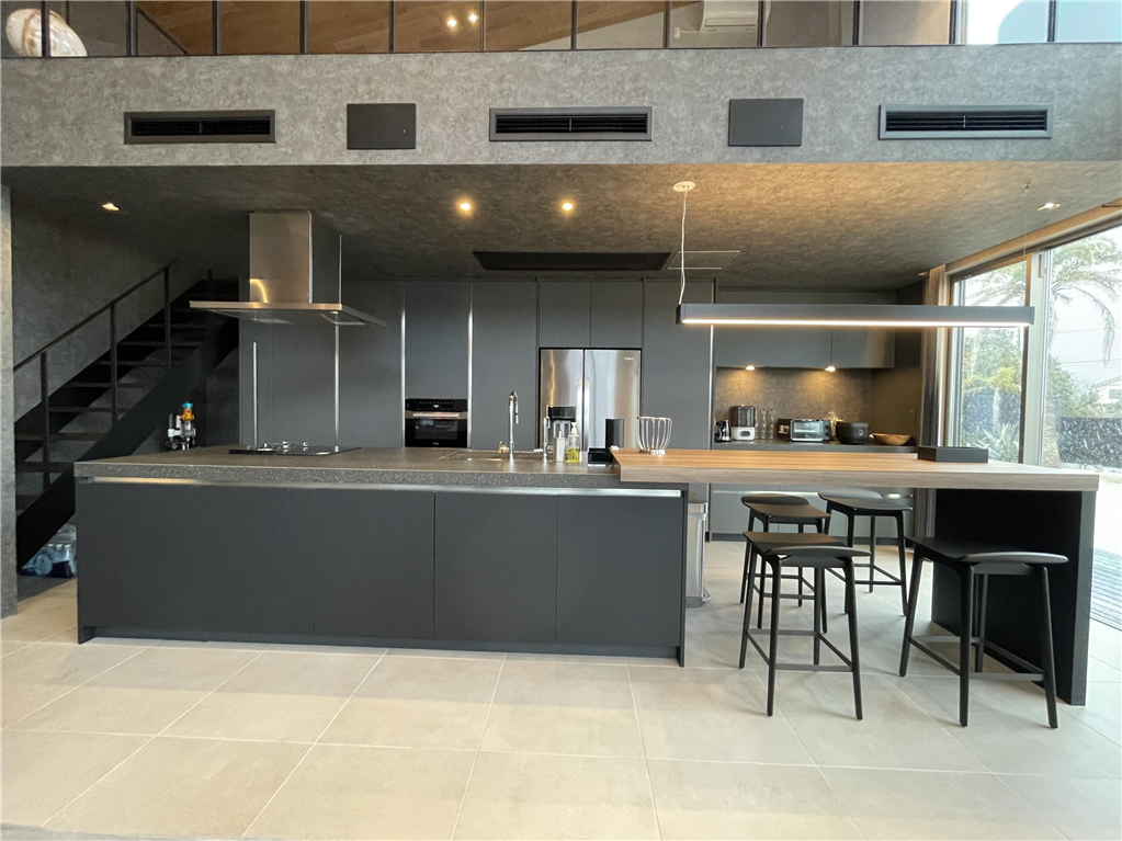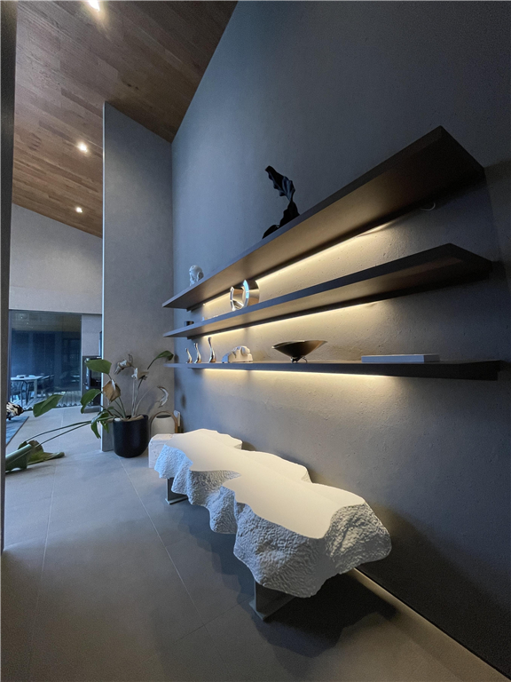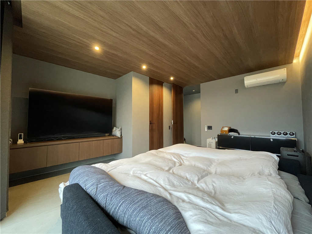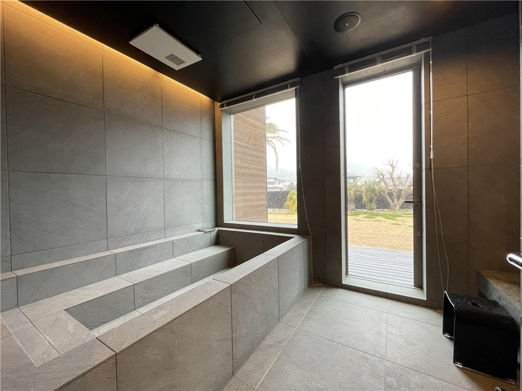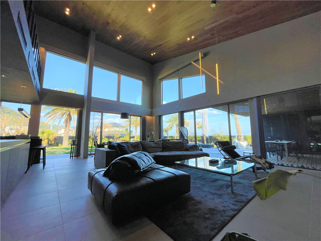 This detached house stands in a seaside resort area. Its monochrome design is coordinated with a high-quality lighting plan. Also, it has a lawn that your dog will love, allowing you to spend a luxurious and extraordinary time.
