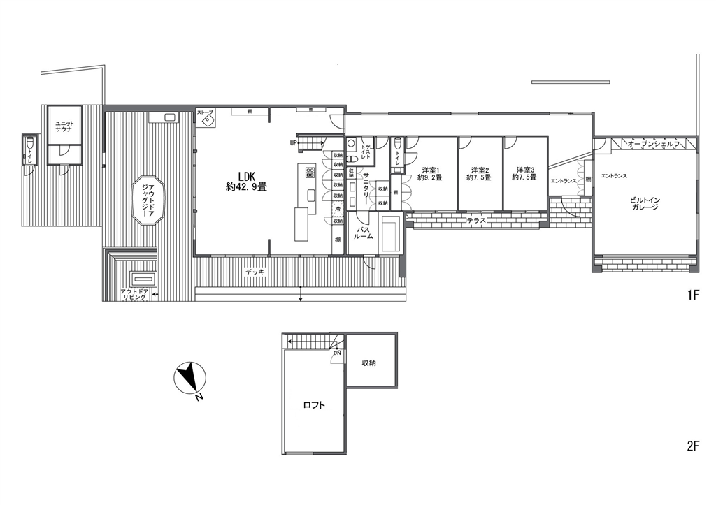 | Building | Total Floor Area | (Registered record)251.94㎡(2,711.86 sqft)1st floor/225.45㎡(2,426.72 sqft)2nd floor/26.49㎡(285.14 sqft)*The total floor area includes a built-in garage area of 46.37 sqm. |
