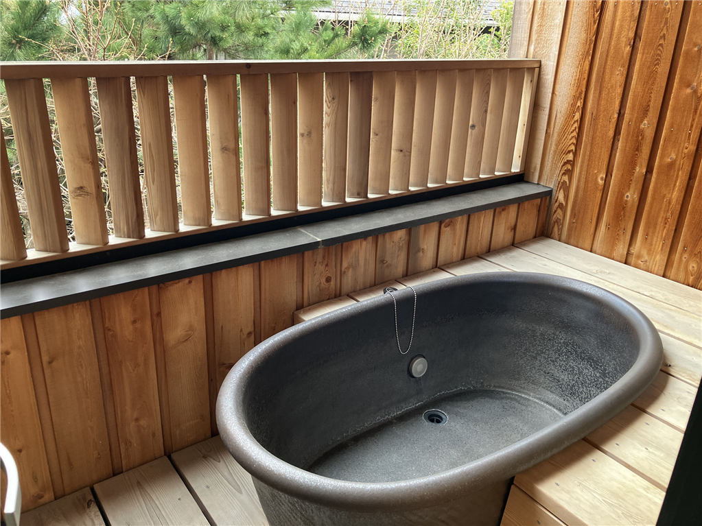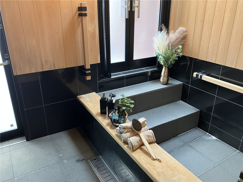 A detached house of approximately 225 sqm with a built-in garage and an open-air bath.