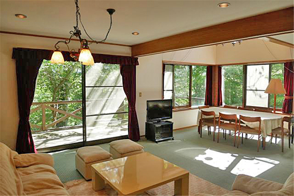 This house surrounded by nature with Owakudani view. Windows facing east, south, and west, along with the high ceiling, create a sense of spaciousness.
