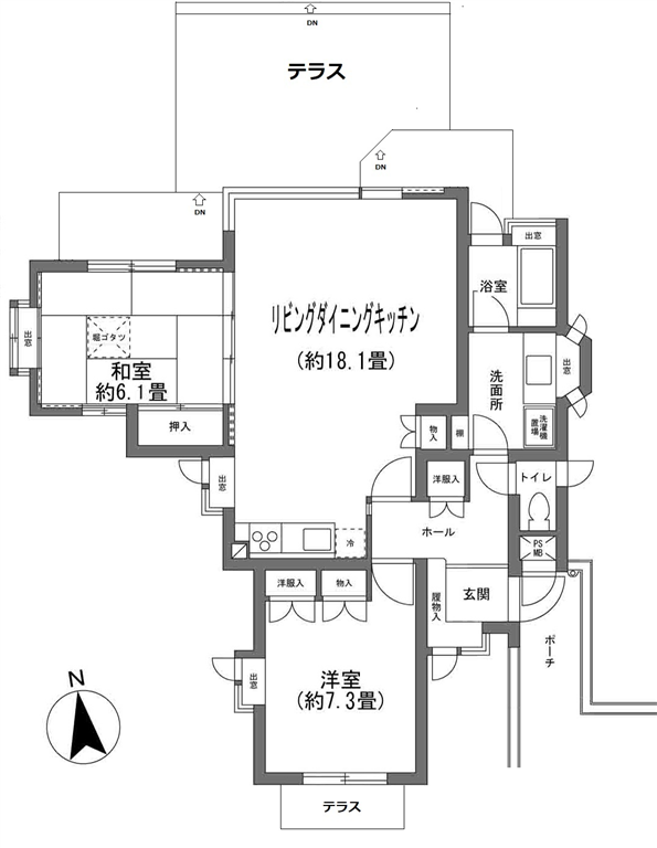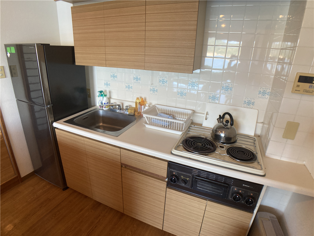 This is a well-ventilated 2BR corner unit with terraces on the north and south. From the Living/ Dining/ Kitchen area you can enjoy the view of Lake Inohana and the lush greenery to the north. The Japanese-style room is equipped with a sunken kotatsu table.