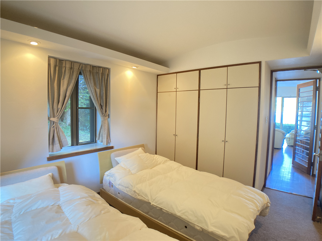 A corner unit on the first floor with direct access to Lake Inohana from the north terrace.