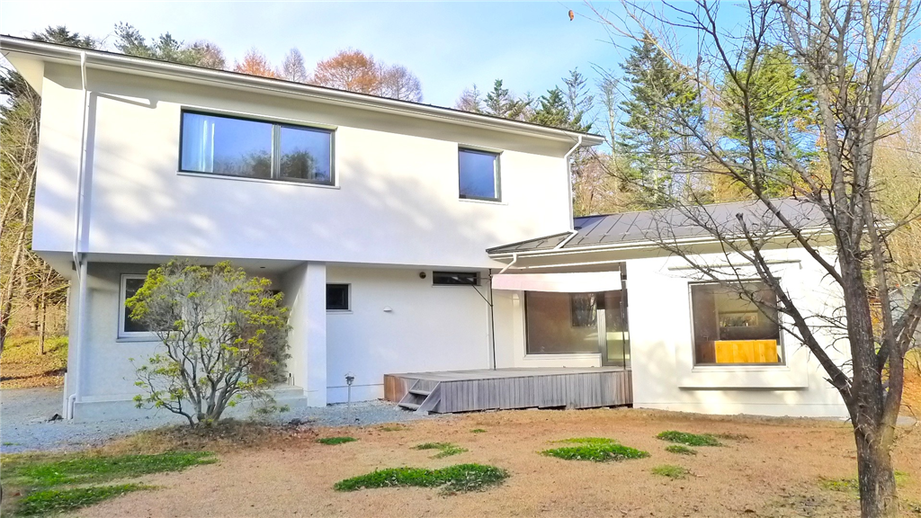 This detached house is located on a 795 sqm flat plot facing a 1,000m forest road, a 5-minute drive (approximately 2.1 km) from Shinano-Oiwake Station on the Shinano Railway Line.