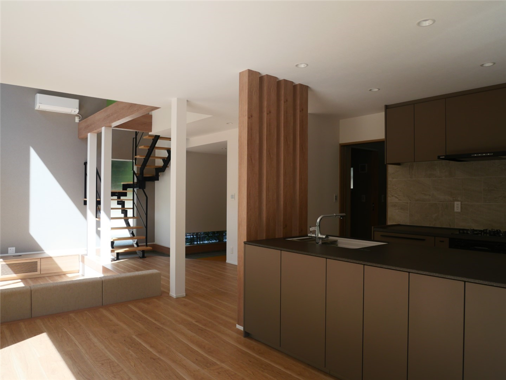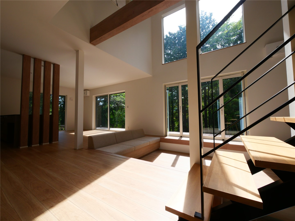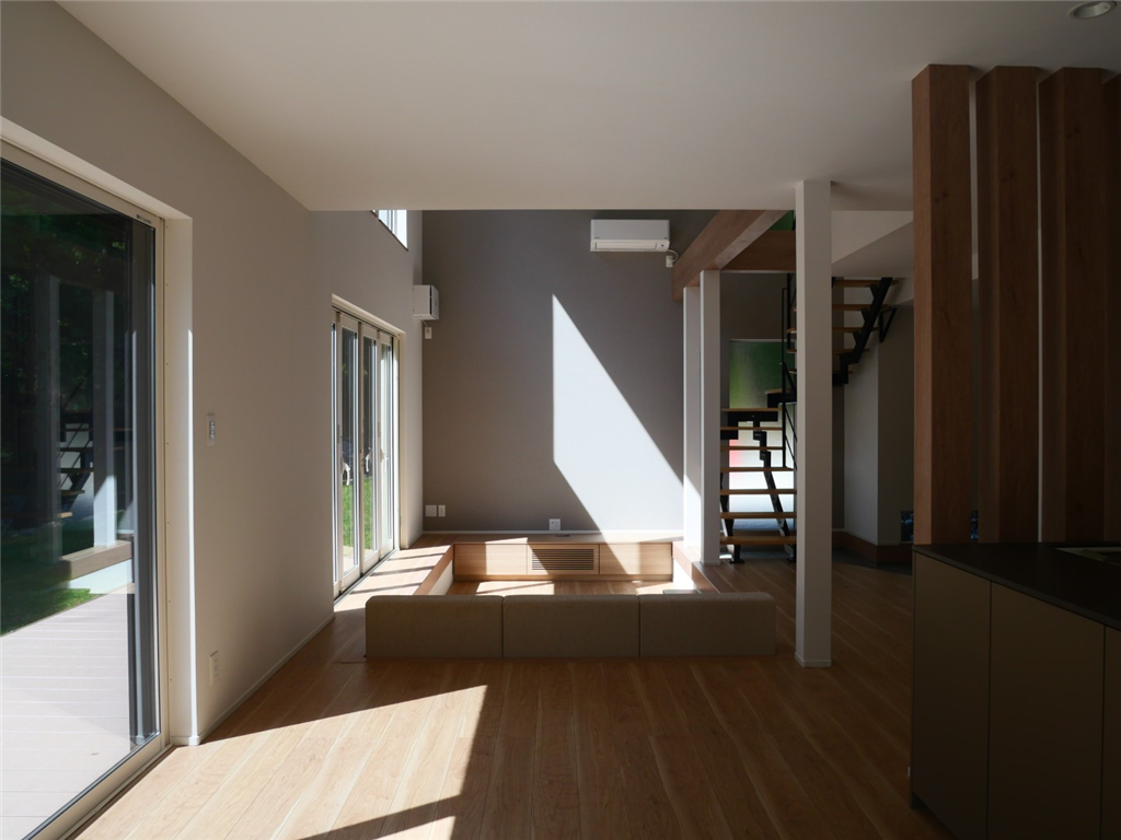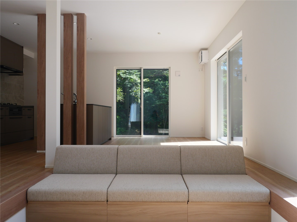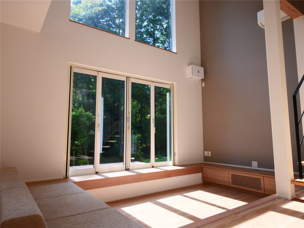 各居室のエアコンと、湿気対策として自動除湿乾燥機も設置しておりますので、無駄な電気を使うことなく、空調管理が可能です。ダウンフロアリビングは吹抜とフルオープンサッシで開放感がございます。利用のしやすさと非日常感が演出された物件です。