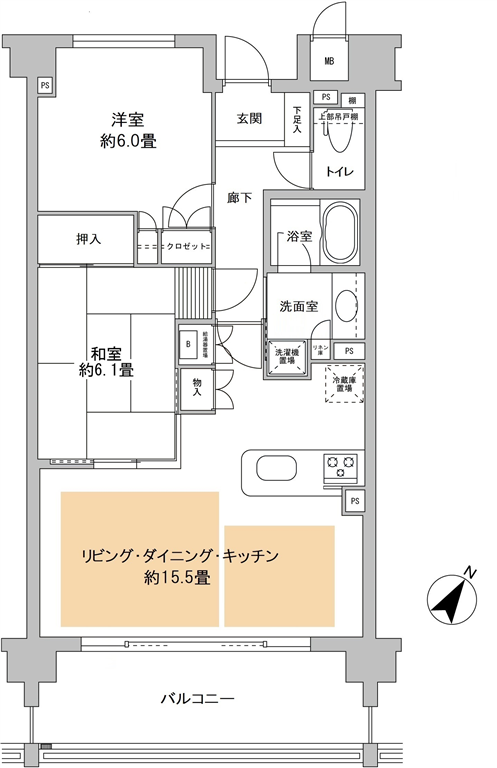 - 間取り:2LDK 専有面積:62.52m2 階/階建:5階/6階建