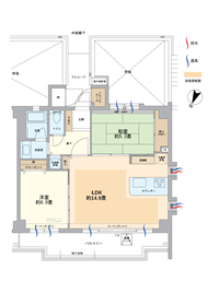 | 備考 | トランクルーム面積/0.96m2(0.29坪)、アルコーブ面積/4.96m2(1.50坪)、室外機置場面積/0.48m2(0.14坪)、メーターボックス面積/0.96m2(0.29坪) | |