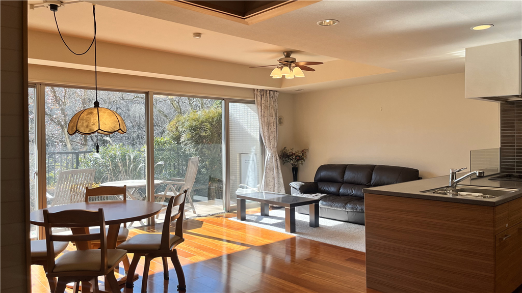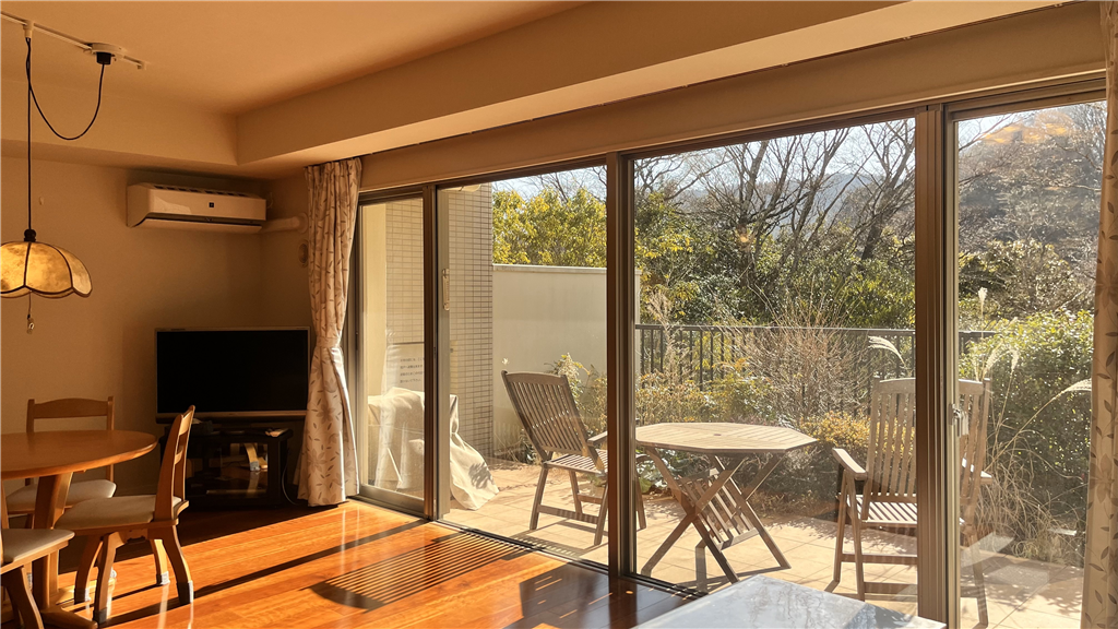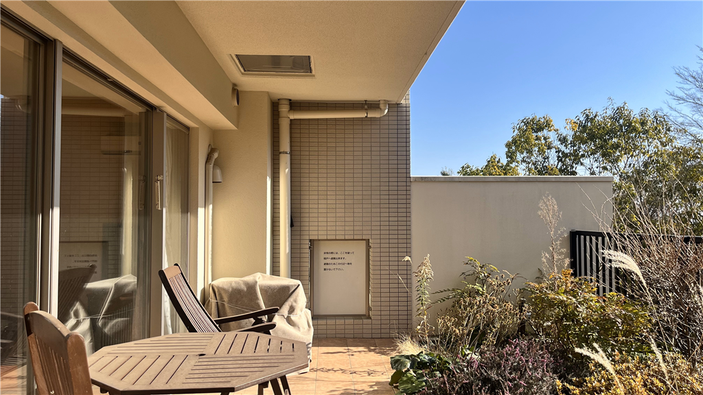 南東向き、専用庭付きの2LDK住戸。テラスで過ごす ひと時が愉しみになります。