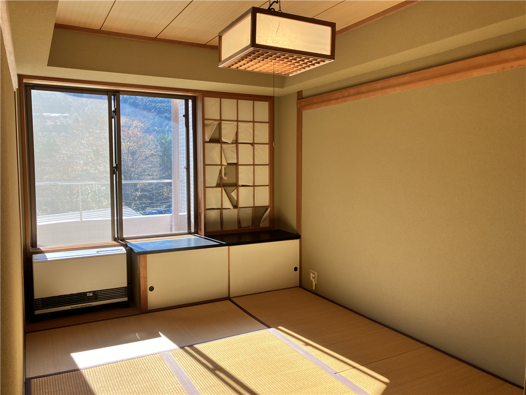 南東向きの日当たり良好な2LDK。ピクチャーウィンドウ越しに箱根外輪山の山並みをご覧いただけます。