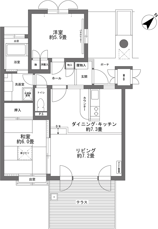 | 建物 | 専有面積 | (壁芯)58.99m2(17.84坪) |