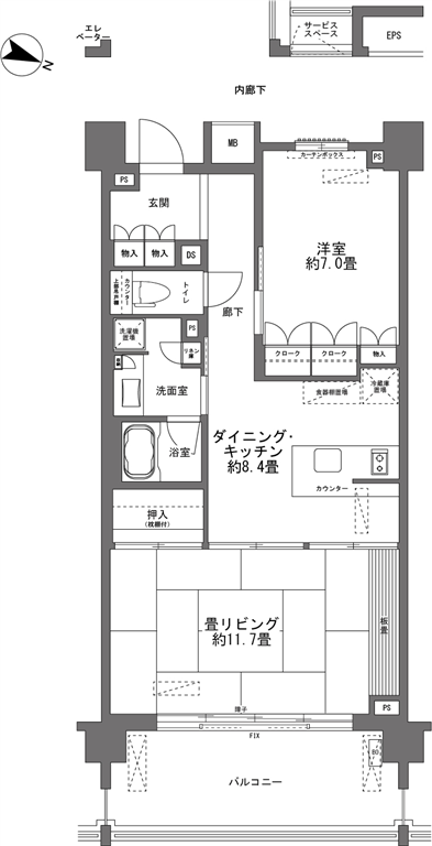 | 備考 | サービススペース面積/1.20m2(0.36坪) | |