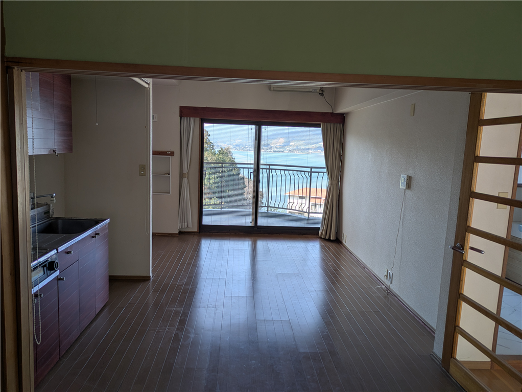 バルコニー・LDK・浴室から猪鼻湖の眺望が楽しめる6階のお部屋です。