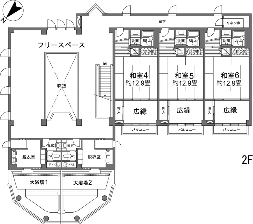 猪鼻湖に面した区画ですので、各客室や大浴場から湖越しの湖西連峰の眺望をお楽しみいただけます。広縁付12.9畳の和室が5室と20.4畳の和室が1室、大浴場、食堂、厨房、管理室がありますので、保養所や研修所としてご利用いただけます。