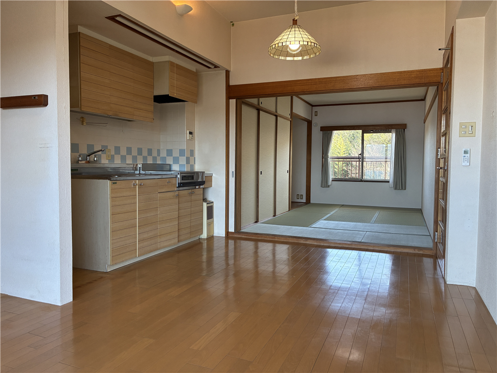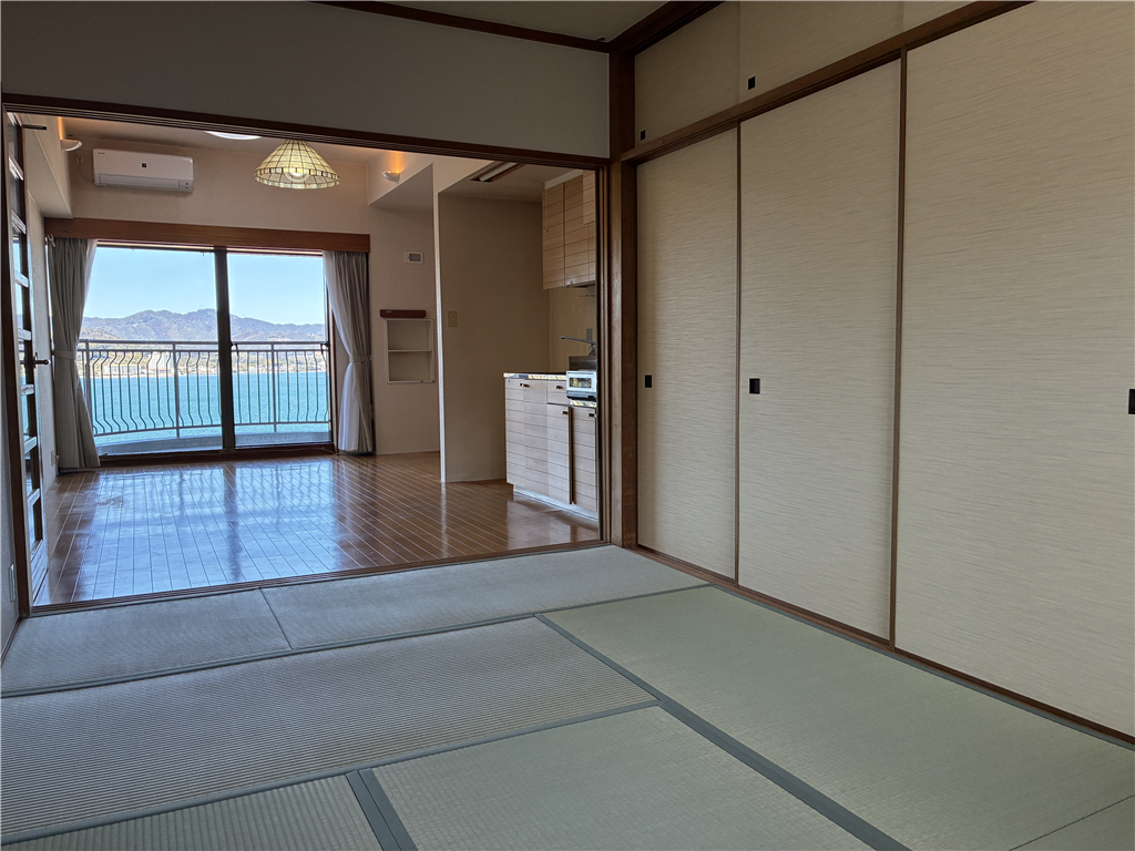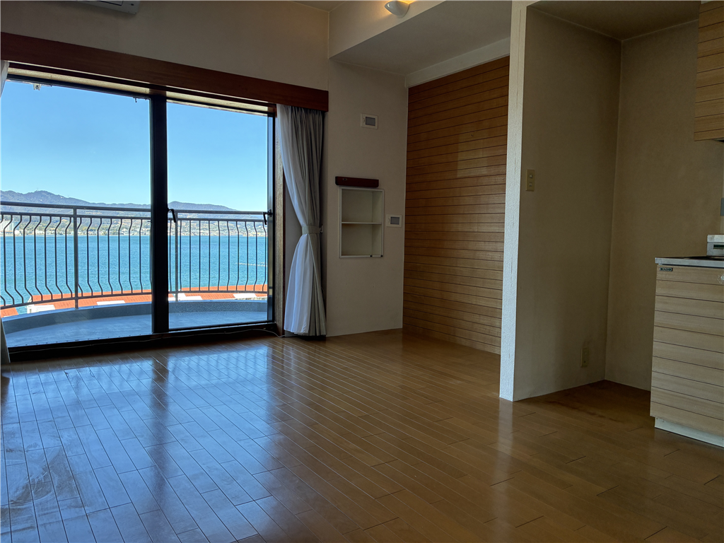 高台に建つ東急リゾートタウン浜名湖I棟の7階住戸。約11.5畳のLDKに約7.3畳の和室が付く1LDKの間取です。お部屋からの猪鼻湖の眺望も良好。ビューバスタイプで、湯船に浸かりながらのんびりと夕日に照らされ輝く猪鼻湖をご堪能ください。