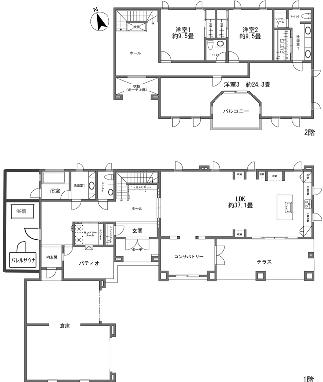 | 建物 | 延床面積 | (公簿)317.78m2(96.12坪) 1階面積/197.19m2(59.64坪) 2階面積/120.59m2(36.47坪) |